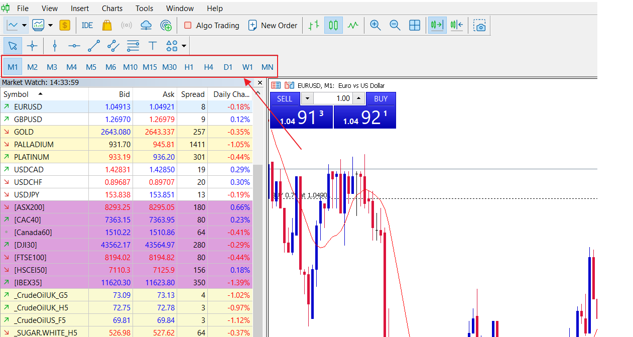 Zeitrahmen: Von dieser Leiste aus können wir die im Diagramm angezeigten Zeitrahmen ändern.