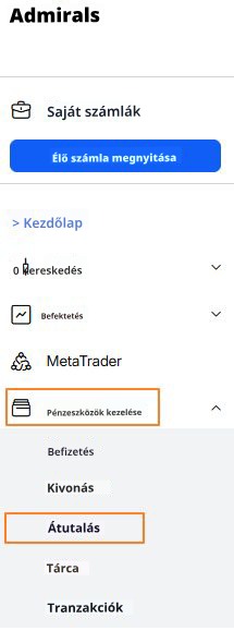 - Először utalja át a kivonni kívánt pénzeszközöket a kereskedési számláról a Pénztárcába.