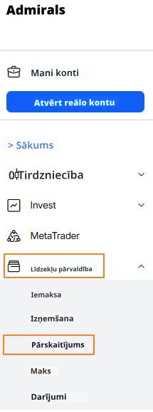 - Vispirms pārskaitiet līdzekļus, kurus vēlaties izņemt, no tirdzniecības konta uz maku.