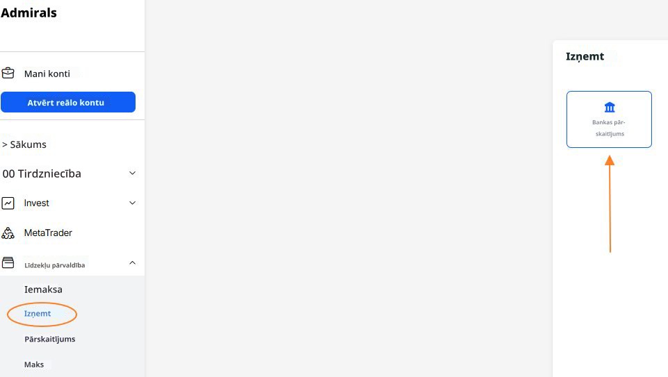 Jūs varat izņemt līdzekļus ātri, viegli un jebkurā laikā savā Dashboard. Lai veiksmīgi uzsāktu jebkuru līdzekļu izņemšanu, lūdzu, sekojiet vienkāršajiem soļiem zemāk: