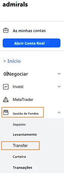 - Abra o ícone suspenso "Gerir Fundos" e selecione "Transferir"