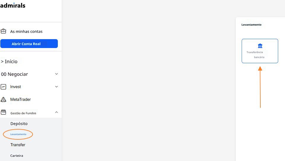 Pode efetuar levantamentos de forma rápida, fácil e a qualquer momento no seu Dashboard. Para iniciar com sucesso qualquer levantamento de fundos, siga os seguintes passos: